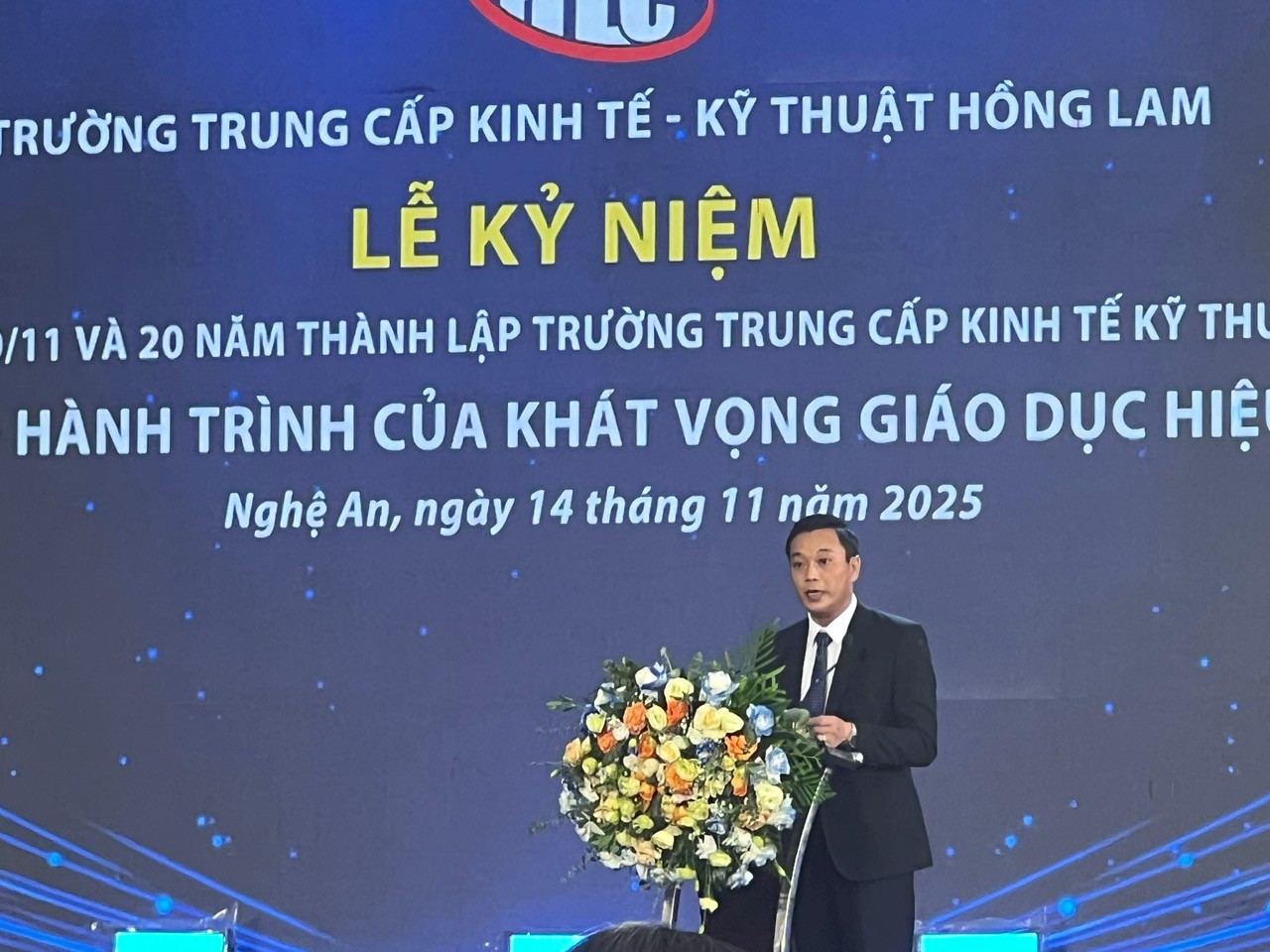 Diễn văn tại buổi lễ kỷ niệm, thầy giáo Phan Xuân Dũng – Hiệu trưởng nhà trường đã ôn lại quá trình hình thành và phát triển của Trường Trung cấp Kinh tế – Kỹ thuật Hồng Lam. “20 năm qua là hành trình đầy thử thách nhưng cũng rất đỗi tự hào, bởi từ một cơ sở giáo dục ngoài công lập còn nhiều khó khăn, trường đã vươn lên khẳng định được thương hiệu và vị thế trong hệ thống giáo dục nghề nghiệp tại tỉnh Nghệ An”, Hiệu trưởng nhấn mạnh.
