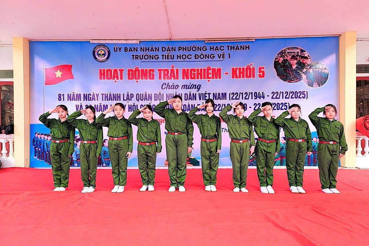 Song hành với hoạt động trải nghiệm thực tế, các buổi sinh hoạt dưới cờ tại trường học cũng được đổi mới theo hướng giàu tính giáo dục. Tại Trường Tiểu học Đông Vệ 1, chủ đề “Chúng em với truyền thống Quân đội Nhân dân anh hùng” được thể hiện qua hoạt cảnh lịch sử về anh hùng nhỏ tuổi Vừ A Dính. Câu chuyện về cậu bé dân tộc thiểu số mới mười mấy tuổi, dũng cảm làm liên lạc, kiên quyết không khai báo dù bị địch tra tấn dã man, đã chạm đến trái tim thầy cô và học sinh. Không nặng nề giáo điều, hoạt cảnh được dàn dựng mộc mạc, giàu cảm xúc, giúp lịch sử trở nên gần gũi và dễ cảm nhận hơn với các em.