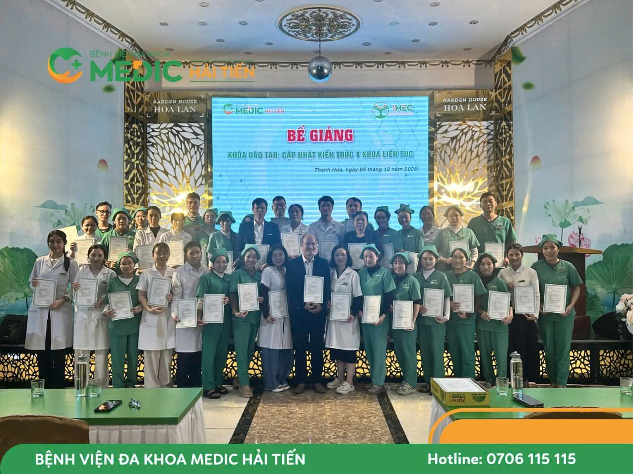 Học viên khóa đào tạo “Cập nhật kiến thức Y khoa liên tục” của Bệnh viện Đa khoa Medic Hải Tiến nhận chứng nhận hoàn thành vào ngày 05/12/2025.