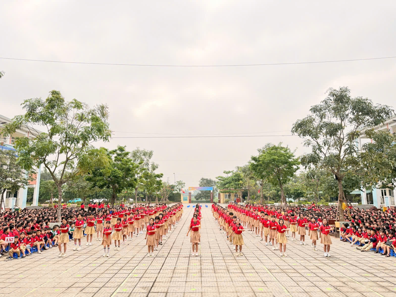 Học sinh Trường Tiểu học Ngô Thì Nhậm tham gia hoạt động tập thể trong sân trường, thể hiện tinh thần kỷ luật, đồng đều và môi trường giáo dục năng động, tích cực.