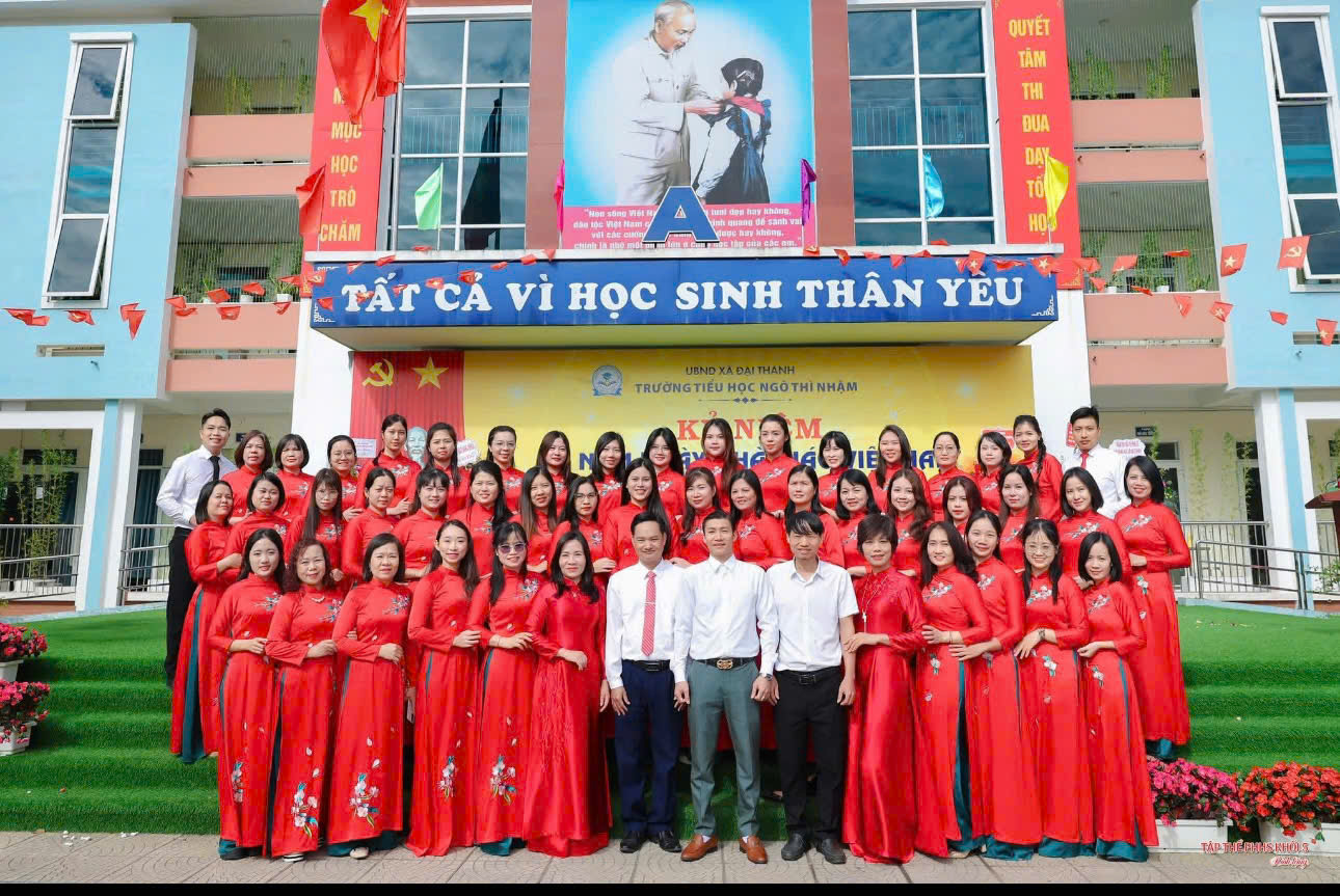 Tập thể cán bộ, giáo viên Trường Tiểu học Ngô Thì Nhậm trong ngày khai giảng năm học mới, thể hiện tinh thần đoàn kết, đồng lòng xây dựng môi trường giáo dục vì học sinh thân yêu.