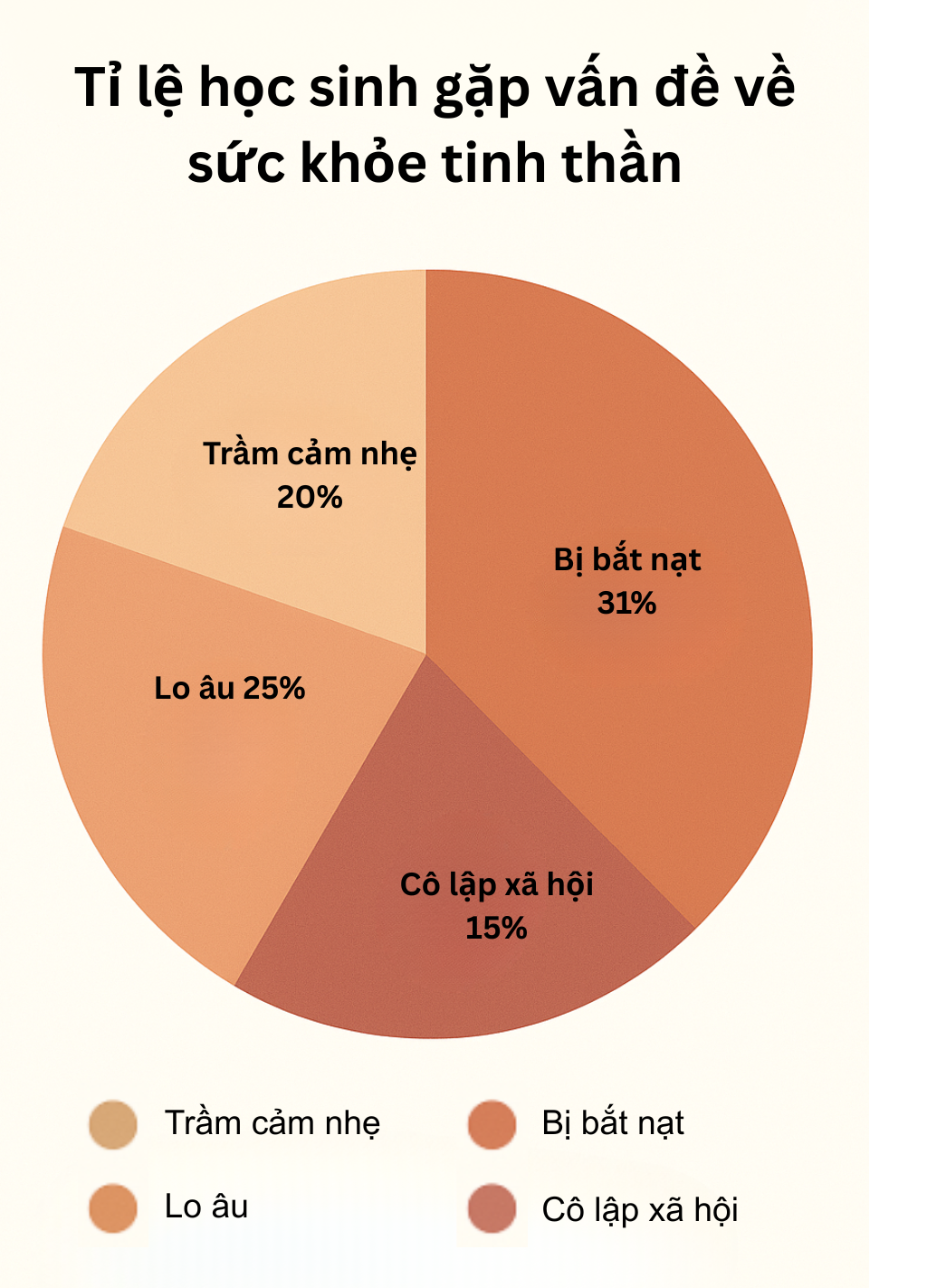 Theo khảo sát của Viện Khoa học Giáo dục Việt Nam (2024), hơn 41% học sinh từng trải qua cảm giác bị cô lập hoặc bị bắt nạt tinh thần. Điều đáng nói, đa số các em không chia sẻ với thầy cô hay cha mẹ vì sợ “bị hiểu lầm”.