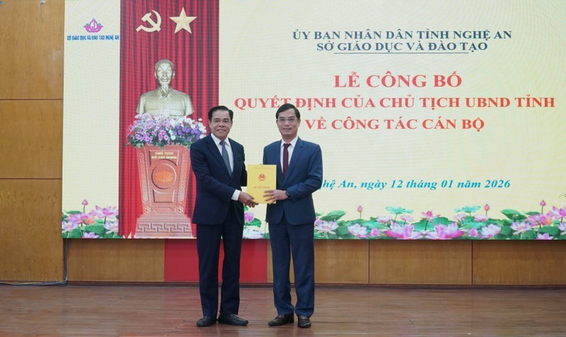 Chiều 12/1, UBND tỉnh Nghệ An đã tổ chức lễ công bố Quyết định về công tác cán bộ đối với ông Nguyễn Văn Khoa (SN 4/10/1977), Tiến sĩ Quản lý giáo dục, Cử nhân Sư phạm Toán học, Lý luận chính trị cao cấp, chức vụ hiện tại Phó Giám đốc Sở Giáo dục và Đào tạo giữ chức vụ Giám đốc Sở Giáo dục và Đào tạo Nghệ An.