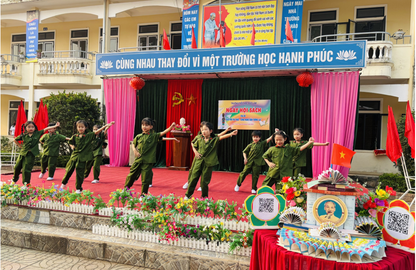 Điểm nhấn trong việc lan tỏa văn hóa đọc là hoạt động Ngày Sách và Văn hóa đọc Việt Nam được tổ chức với nhiều hình thức phong phú. Việc kết hợp sách in với mã QR giúp học sinh vừa đọc trực tiếp, vừa mở rộng nội dung trên nền tảng số. Cách làm này không chỉ tăng sự hứng thú mà còn giúp việc đọc trở nên linh hoạt hơn.