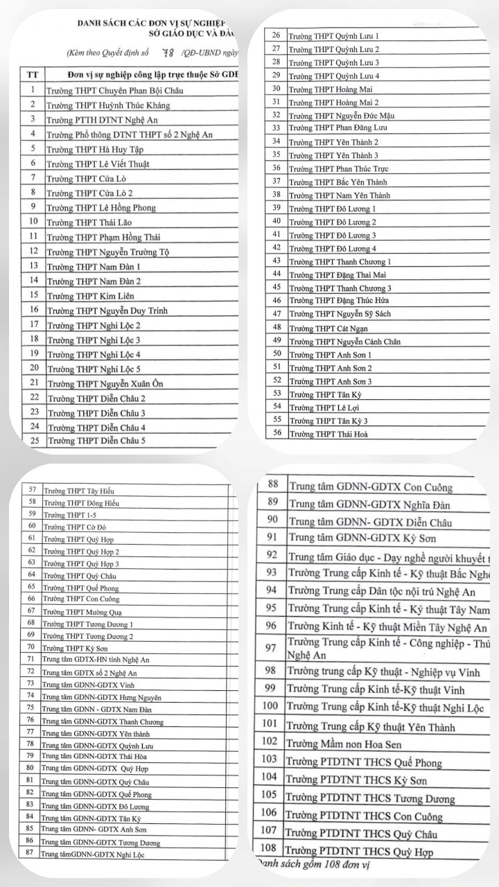 Danh sách 108 đơn vị sự nghiệp Sở GD&ĐT Nghệ An từ 29/10/2025