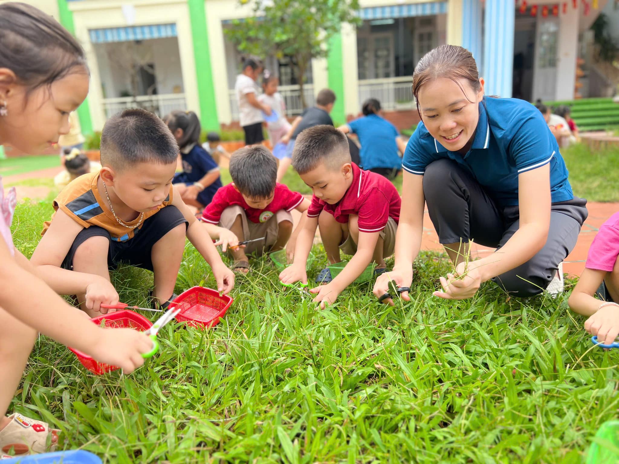 Hoạt động Lao động tập thể cắt cỏ tô thêm vẻ đẹp trong ngôi trường Xanh – An toàn – Hạnh phúc.