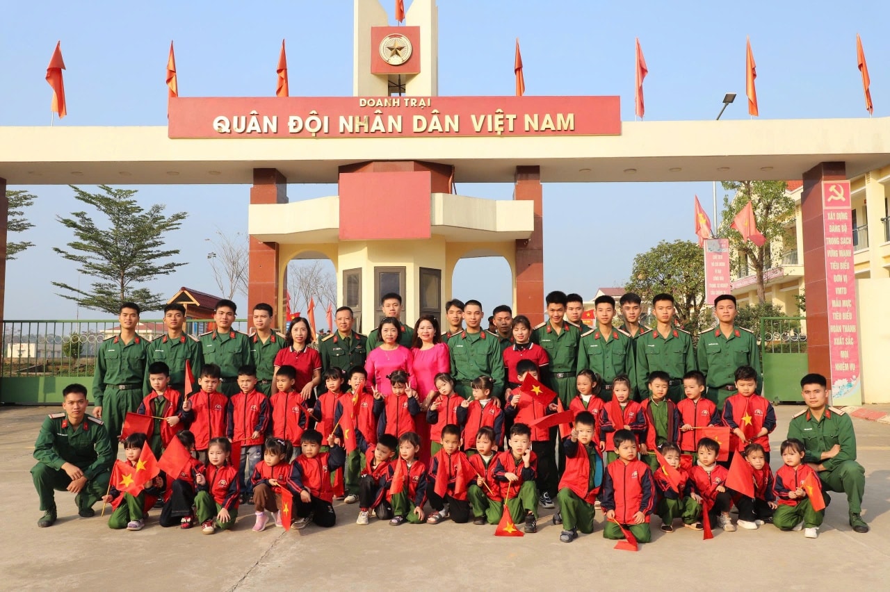 Trẻ được trải nghiệm thành những cô, chú bộ đội nhỏ trong dịp kỷ niệm ngày 22/12