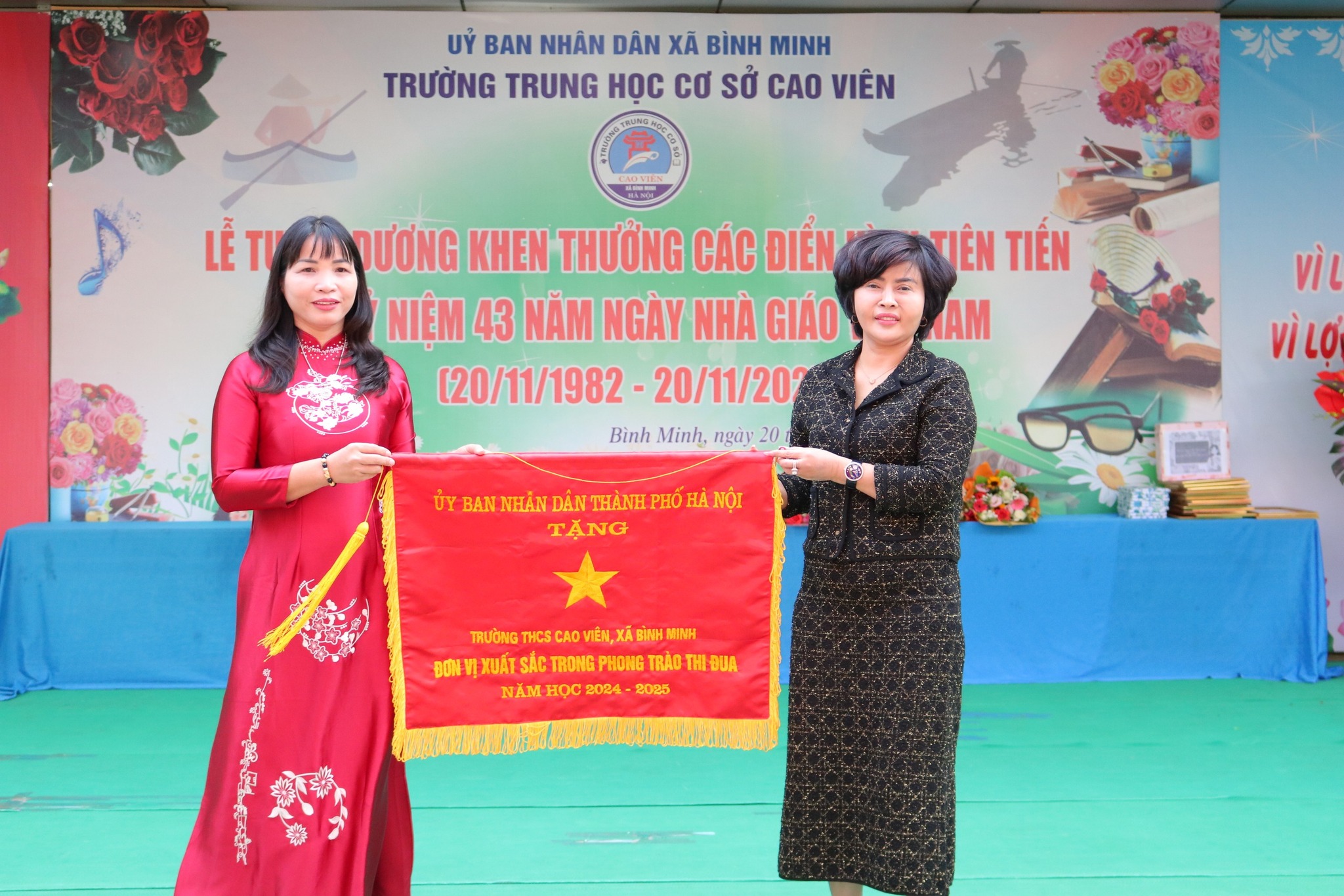 Trường THCS Cao Viên nhận Cờ đơn vị xuất sắc trong phong trào thi đua do UBND TP Hà Nội trao tặng.